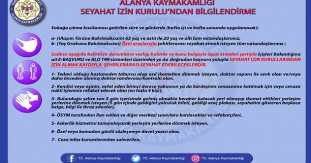 İçişleri bakanı süleyman soylu'nun açıklamasının ardından, yaş sınırı olmaksızın şehir dışına her çıkacak her vatandaş şehirler arası seyahat izin belgesi almak zorundadır.